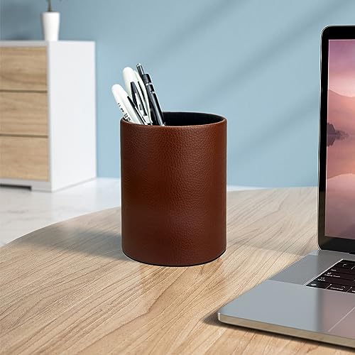 - 【Leather Pencil Holder Organizer】Crafted from premium synthetic leather, luxury and sturdy. The texture is natural and realistic. The color of pencil holder for desk has a sleek and sophisticated design that will give your office such a classy touch