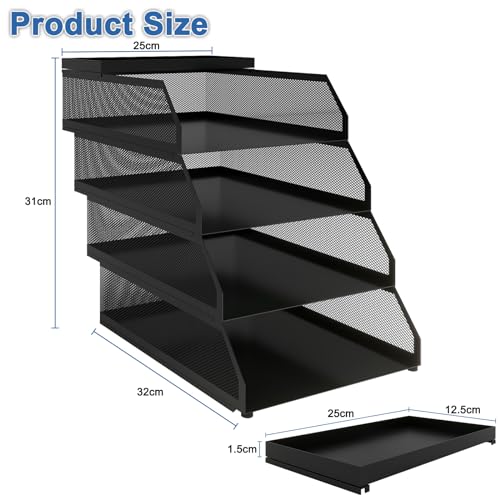 • 【Durable & Sturdy】The 4 tier desk organizer is made of high-density metal mesh, and thick iron tray to avoid deformation. Reasonable structure, strong and durable paper tray.