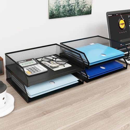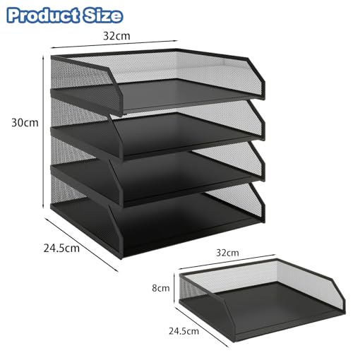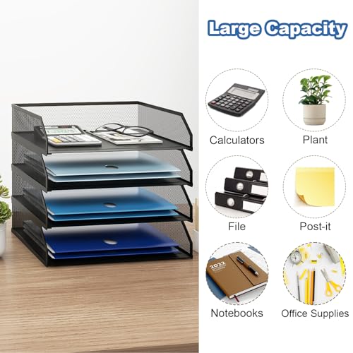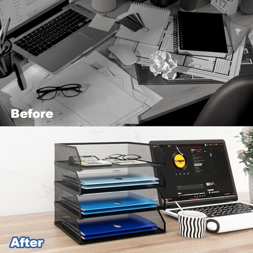 - 【Durable & Sturdy】The 4 tier desk organizer is made of high-density metal mesh, and thick iron tray to avoid deformation. Reasonable structure, strong and durable paper tray.