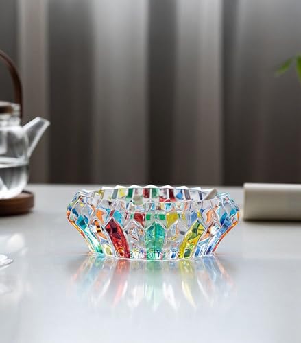 - Gorgeous Round Crystal bowl. Top K9 glass material,which is strong and beautiful,Creative design colorful crystal texture reinforced glass.