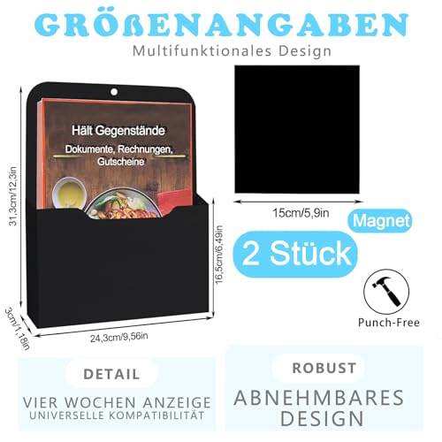 - Package: 2 x A4 magnetic file holders, size: 31.3 x 24.3 x 3 cm, magnet size: 15 x 15 cm, it can be firmly attached to the metal surface and will not slip
