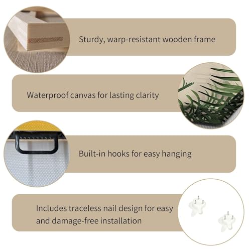 - Ready-to-Hang Convenience This bathroom artwork comes pre-framed with sturdy hanging hooks, plus a traceless nail for easy installation. No extra tools or assembly are needed—simply unpack and hang to transform your wall décor in seconds.