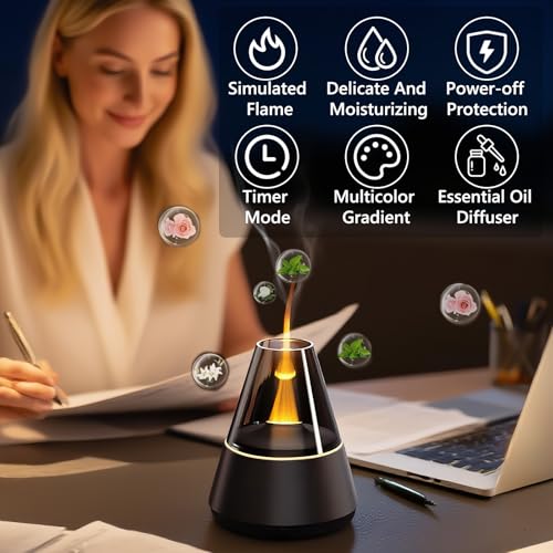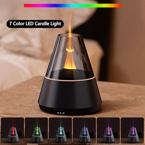 - 【Aroma Diffuser with 7 Color Mood Lighting】Enjoy customizable ambiance with 7 static or gradual color modes, featuring unique warm light for relaxation). The LED light turns on together with the mist just like the candle flame swings at night, creating a cozy and soothing atmosphere in the dark. Add your favorite essential oils to transform spaces into fragrant sanctuaries, perfect for yoga, reading, working or stress relief.