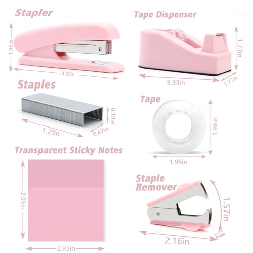 - What’s Included – You will receive 1x 360°rotating pink pen holder, 1x pink stapler, 1x pink tape dispenser, 1x office scissors,1x Staple Remover,1x Tape,20 x Push pins 7 x Big Clips 15 x Small Clips 30 x Paper Clips,1000 staples,and 1x 50pcs pink transparent sticky notes.Such a complete pink desk accessories combination is enough to meet your school and office using needs.