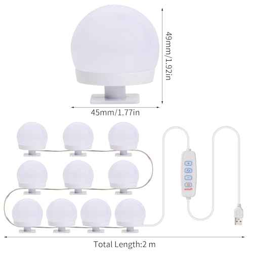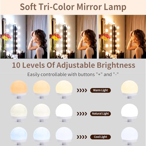 - 🌟10 Level Brightness Dimmable- The brightness of this dressing table lights can be adjusted from10% to 100%, 10 brightness levels for each color. You can choose your favorite color and brightness, perfectly meet your lighting needs in different scenarios.