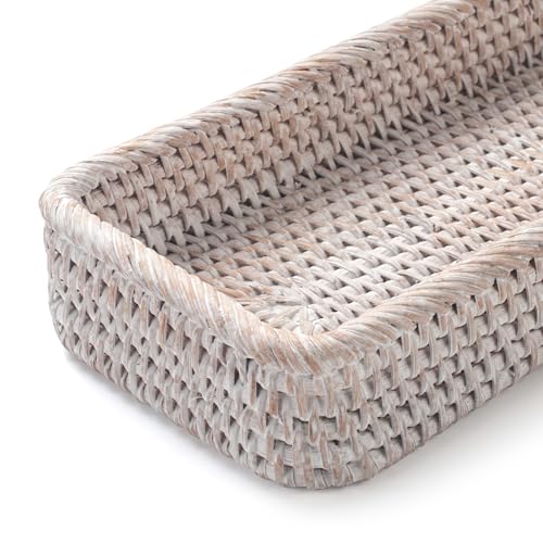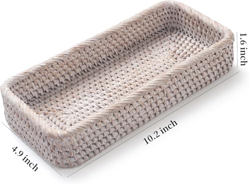 - Multifunctional Tray: The rattan tray can not only be used as bathroom tray to storage hand towel, candle, wipes, toiletries, perfumes, cosmetics, skincare products, but also can be used as storage basket tray to storage vase, small planter, small decorations, remote control, keys and other small items.