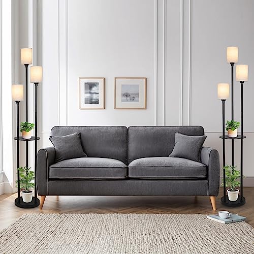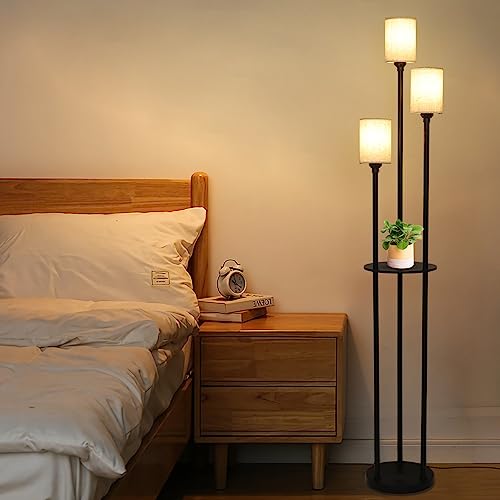 - 💡【3-Light Floor Lamp with Shelves】Combination of three beige fabric lampshades and black elements makes this shelf floor lamp perfect for industrial, farmhouse and modern minimalist home styles. Three light poles form a solid structure between the shelf and the metal base, allowing this standing lamp to be stable enough. The weighted base of the floor lamp for living room is designed to prevent tipping and keep you and your family safe at home.