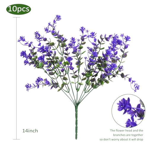 - 【10 Bundles Artificial Fake Flowers】- You will get 10 Bundles artificial flowers, these flowers are handmade to offer a more unique look in every bundle. Each plastic flowers has 7 flexible stems and bushy eucalyptus leaves. The artificial lotus outdoors flowers'height is 14".