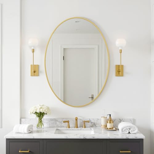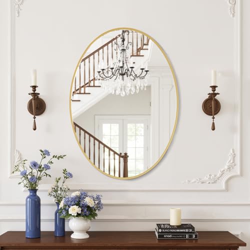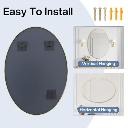 - High-quality Mirror: 51x71cm Oval Wall mounted mirror with aluminum frame.Upgrade Nano glass made with explosion-proof technology.