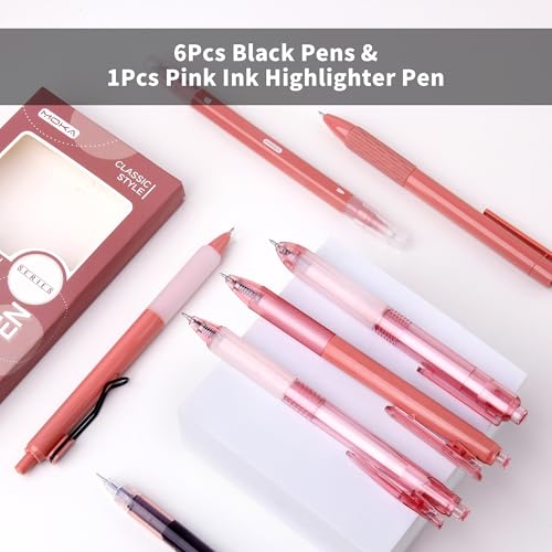 - Ballpoint Pens Set: our 7 pack of gel ink pens include 6pcs black gel pens and 1 pink ink dual tip highlighter pens, ideal for everyday general-purpose writing, perfect for taking note and bullet journal