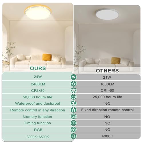 - 【High-Quality Material, Easy to Install】We provide 3000LM high-quality energy-saving 24W ceiling lights with CRI>80, ensuring vivid colors and brighter lighting, with a service life of up to 50,000 hours, reducing maintenance costs and installation is a breeze, you can follow our video and instructions for installation.