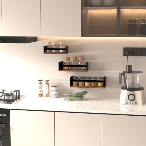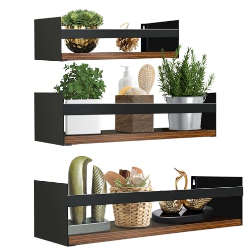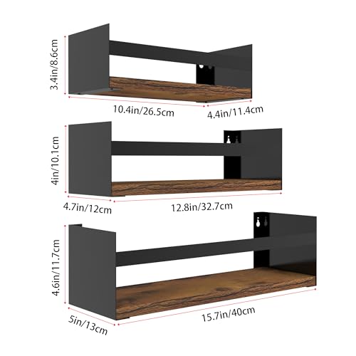 - Storage solution: The black wooden shelves for wall set of 3 measures 40x13x11.7 cm, 32.7x12x10.1 cm and 26.5×11.4×8.6 cm and displays your precious items perfectly. Designed for kitchens, bathrooms and living rooms
