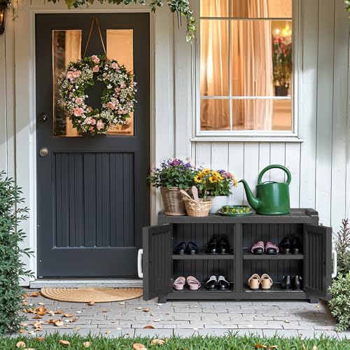 - 【Waterproof & UV-Resistant for Indoor/Outdoor Use】 Made from premium materials, this cabinet is fully waterproof and UV-resistant. This makes it not only an ideal indoor shoe cabinet but also a durable outdoor shoe storage bench for your patio or porch, capable of withstanding various weather conditions.