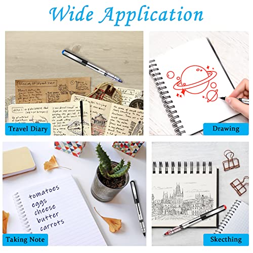 - 【Wide Application】Writing pens are suitable for note taking, sketching, drawing, painting, illustration, autographs, coloring books and travel journals. Liquid ink rollerball pens are a useful supplies for school, home and office, and can also be given as a gift to friends and family