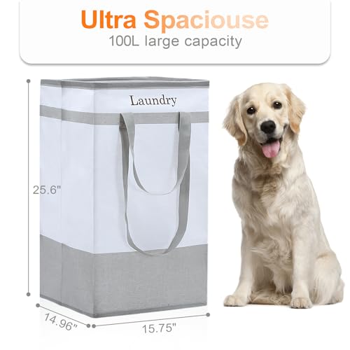 - Large Capacity: this spacious 100L laundry hamper is designed to hold a large load of laundry, washing baskets for laundry perfect for families or individuals who need to manage multiple loads of clothes, toys, towels, or linens.