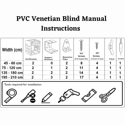 - These Venetian blinds for windows are easy to fit, with all installation instructions included. The fittings box contains necessary components based on size and includes child safety devices for secure installation. They're perfect for kitchen blinds for windows, bathroom blinds, and blinds for doors.