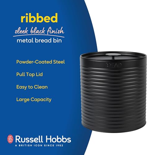 - Elevate your countertop storage with this Russell Hobbs bread bin, boasting a stylish ribbed design with a sleek black finish.