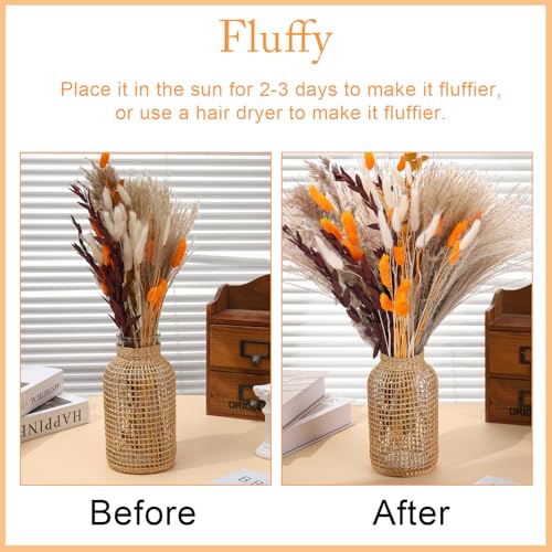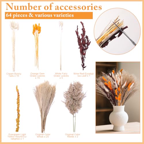 - Stunning Variety: This exquisite 64PCS dried flowers bouquet features an array of beautiful blooms, including bunny tails, eucalyptus and so on, perfect for adding a touch of boho decor to any space