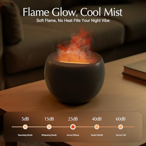 - Realistic Flame Ambience: Our flame diffuser create the warmth of a glowing fireplace with soft flame-effect lighting. The diffuser combines a gentle mist and LED light to mimic real flames, it works best in low light or at night and this aroma oil diffuser is bound to be the perfect addition to any part of your home.