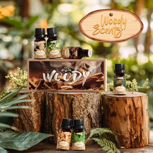 - Distinctive Woody Collection – The SALKING Premium Woody Fragrance Oil Set includes six earthy, grounding scents: Frankincense, Cedarwood, Sandalwood, Teakwood, Cypress, and Patchouli. Diffuse these oils to create a warm, woodsy ambiance inspired by nature’s forests—perfect for adding depth and richness to any space.