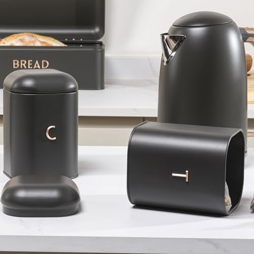 - 3-PIECE COUNTERTOP SET: Perfect for keeping your dry goods fresh! This Salter 3-piece countertop set includes 3 storage canisters, and is great for storing tea, coffee, and sugar. The containers are labelled so you always reach for the right one.