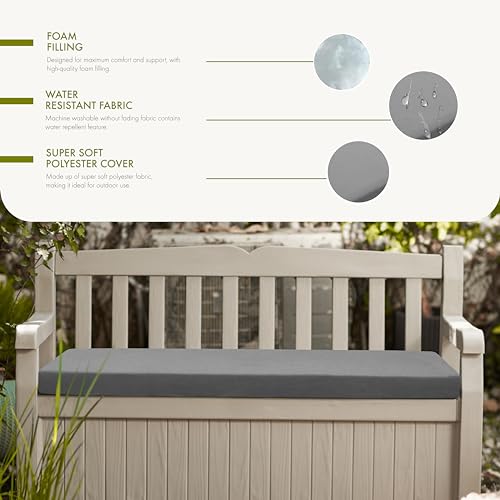 - 🇬🇧 Made in the UK: Crafted with high-quality materials and workmanship for top durability. Title: 2 Seater Garden Bench Seat Pad 128x50cm | Water-Resistant Outdoor Cushion for Iceni & Eden Storage Benches | Soft and Comfortable Patio Furniture Cushion
