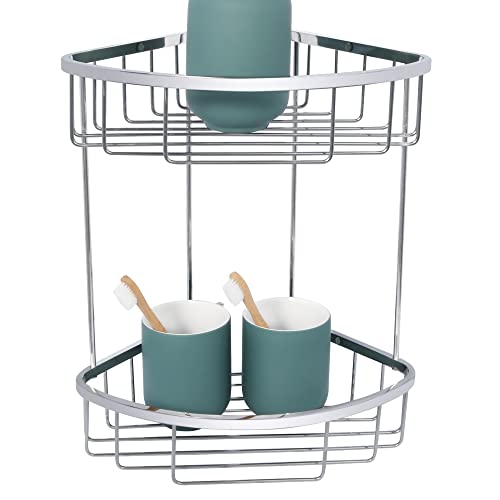 - MODERN DESIGN – Semi-circular 2-Tier design, maximize the use of basket space. ideal for storing a variety of shower bottles and accessories. The raised 7cm height fence can better store bathroom items, not easy to fall.