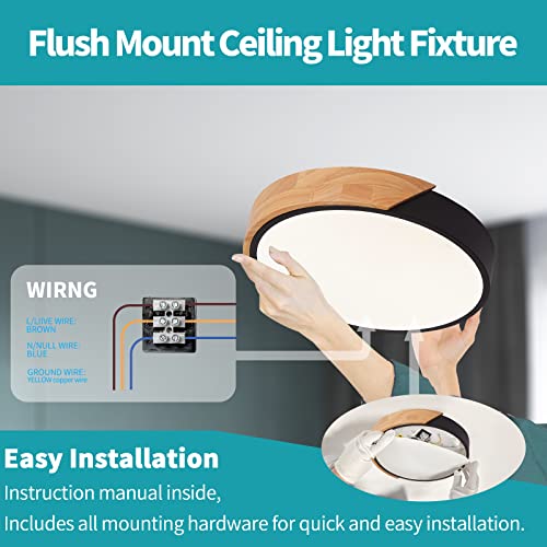 - 【Size and material】 Power: 24W, color temperature: Neutral white 4500K, non-adjustable, size: Ø300 * 50mm / 11.81×1.96in; Material: iron and oak, with some shine.