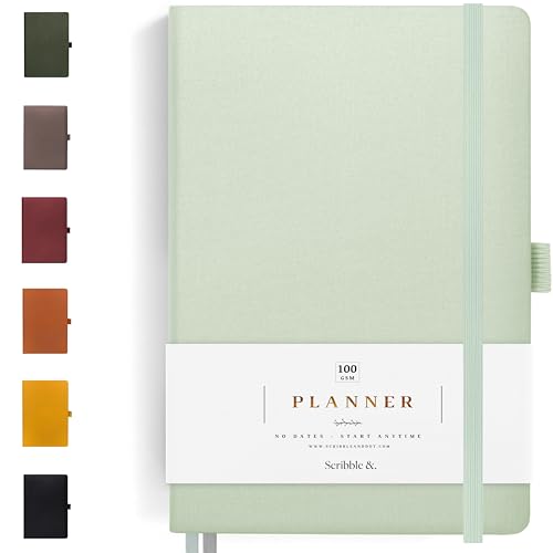 Scribble & Dot® A Daily Planner, Weekly and Monthly Layout | Achieve Your Goals With This Weekly Organiser Diary, A5 size, Hardcover Agenda. Start Anytime (Sea Sage)