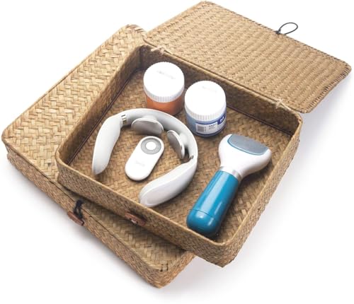 - Multi functional basket: The wicker storage bins can storage towels, socks, clothes, books, headphones, chargers, cosmetics, skincare products, chargers, charge cables, cards, letters, paper and other items. You can put them on shelf or table in living room, bedroom, bathroom.