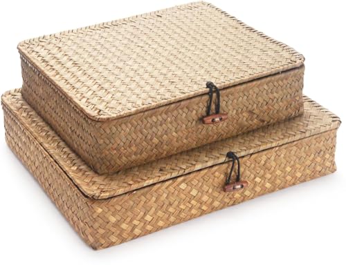 - Size: Large flat basket: 32 x 28 x 7 cm, small flat basket: 27.5 x 23.5 x 6.5 cm, two different sizes meet your different storage needs. Provide you a tidy and organized living space.