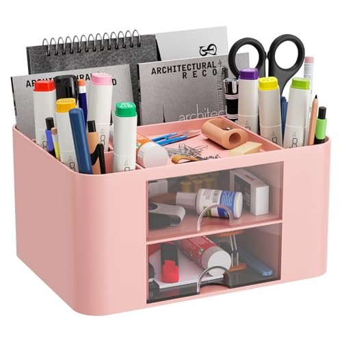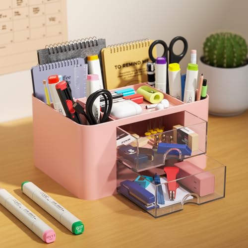 - 【Ample Storage Space】: Equipped with multiple compartments and two drawers, this organizer provides ample storage space for pens, pencils, sticky notes, paper clips, and other small items, keeping everything neatly in place.