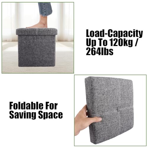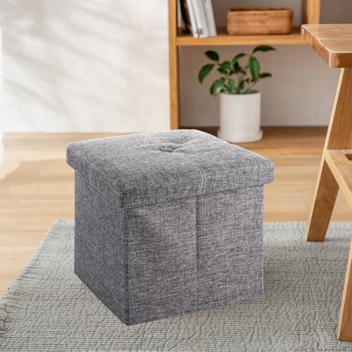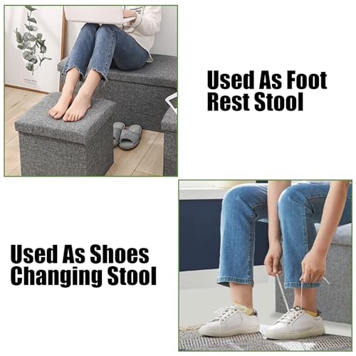 - PREMIUM MATERIAL: Made of high quality MDF and linen material, the foldable storage bench is sturdy, durable and lightweight, which could be used for a long time. With thick sponge padding, the foot rest stools are not easy to deform.