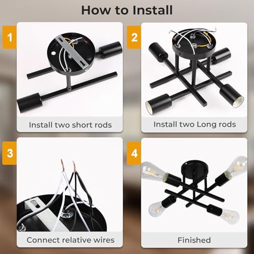 - 【Application of Flush Mount Light】 The black light fixtures ceiling mount is suitable for bedrooms, farmhouses, dining rooms, living rooms, hallways, study rooms, bookcases, balconies, porches, gazebo, etc. It brightens and decorates your house.