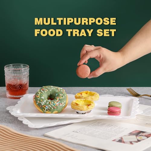 - 【Trays for Eating 】Serve a wide variety of baked, fried, and cold foods like party snacks, appetizers, or desserts on these shallow plastic white tray.