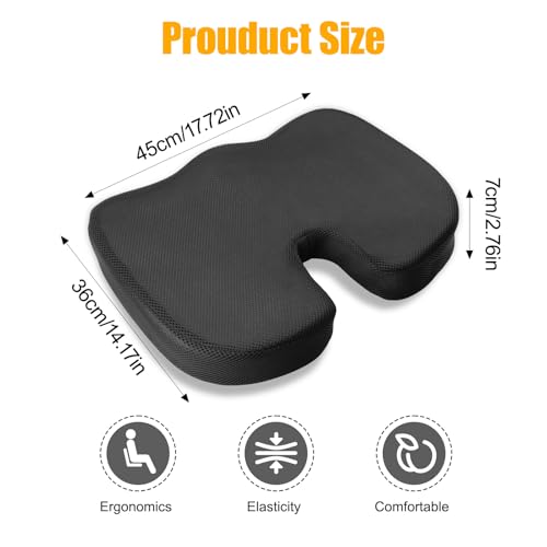 - 💜【Tailbone and Back Support】The seat cushion feature a coccyx cutout or U Ergonomic design, size17.72''L x 14.17''W x2.76''H.Coccyx cushions pad are used to maintain proper spinal alignment and improve sitting posture, reduce your tailbone, hemorrhoid, sciatica and back pain. Suitable for use in various settings, such as at home, the office, or while traveling