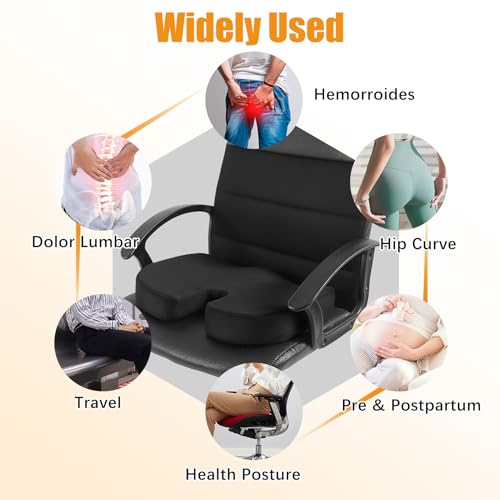 - 💜【Relieve sitting pressure】Prolonged sitting easily causes coccyx compression and sciatic nerve pressure even hemorrhoids. This sciatica cushion corrects your sitting posture to promote thigh blood circulation and offers long-lasting comfort when long sitting. This seat cushion for office chairs and home use caters to the needs of men and women alike, which elevates your seating experience to a new level of comfort
