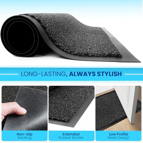 - 7MM THICK LOW-PROFILE DOOR-FRIENDLY BUILD: Struggling with floor mats that snag under doors? This indoor and outdoor floor mat’s low-profile design balances thickness for durability with slimness to ensure doors glide effortlessly over it. No more tugging or adjusting—just seamless integration with your entryways. Wouldn’t it be nice to have an anti-slip snag-free mat that fits perfectly without the fuss?