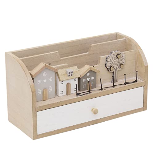 - LETTER RACK: This letter rack will ensure your post and important bits of paper are kept safe and do not clutter up the kitchen table! The pretty muted colour tones, cute houses and heart embellishments add to the charm of this letter organiser