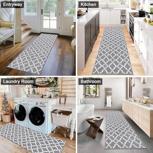 - [Long Runner Rug]: Size: 50x150cm. Perfect size for your entrance, hallway and any other high traffic area in your home. Tips: The hallway runner rug non slip has been folded and packaged. After taking out the package, you can lay it flat for two days or press to restore the flatness.