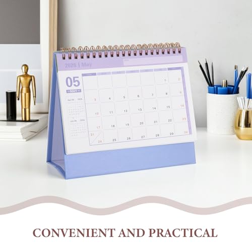 SHINEOFI Desk Calendar 2025-2026 Small Desktop Standing Flip Calendar for Home School Office Monthly Planner Lavender 19×16.5cm