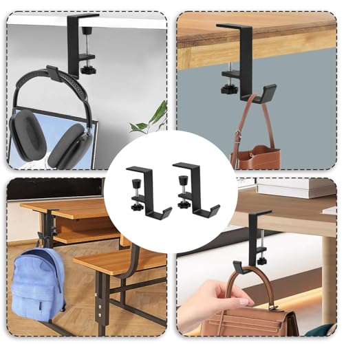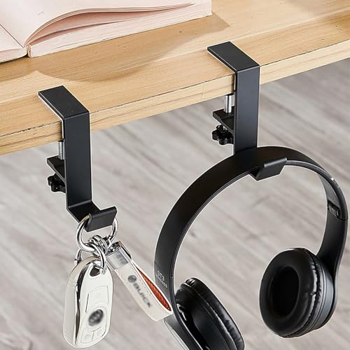 - Double hook design:Headset holder not only helps you place your headphones but also hangs keys, bags, hats, umbrellas, and other everyday items on your kitchen table, desk, bookshelf, or entryway cabinet.