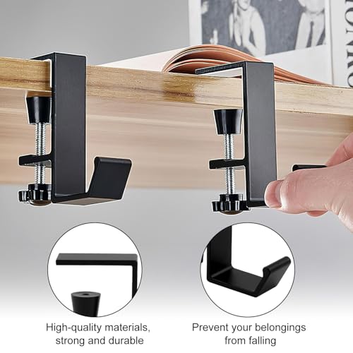 - Firm Installation:Adjustable headphone stand uses a rotating mounting nut tightening design and a non-slip pad design. The hook holds the tabletop in place. The double pressure keeps the hook stable and not easy to fall. Clamps are easy to remove and reinstall.