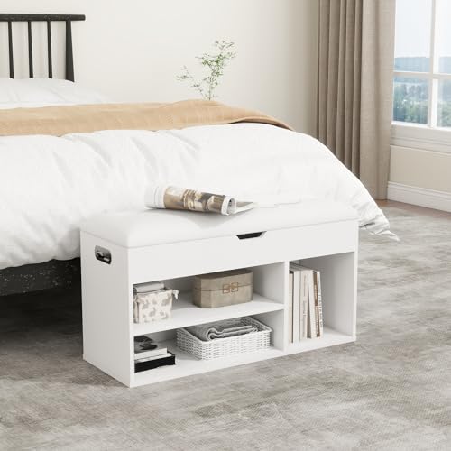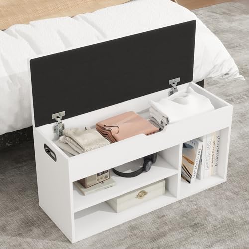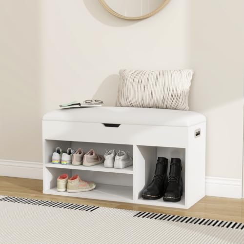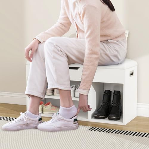 - Open Shelving: Below the seating area, discover three open shelves for additional storage or display. Use them to keep shoes neatly organized and within easy reach, making this bench ideal for entryways, hallways, or bedrooms.