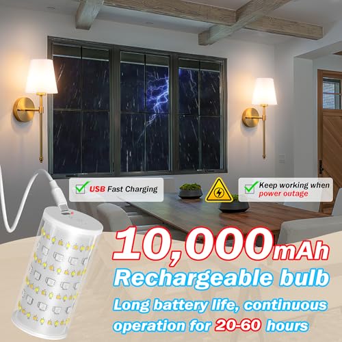- Wall Sconces Battery Operated, USB Fast Charging: The rechargeable wall sconce have a built-in 10,000 mAh battery with a lighting time of up to 20-60 hours, providing uninterrupted and reliable lighting even during power outages. Upgraded magnetic design, using magnets to replace the screws in the bulb socket, no need to unscrew to charge – just pull, bringing convenience to daily use and charging.