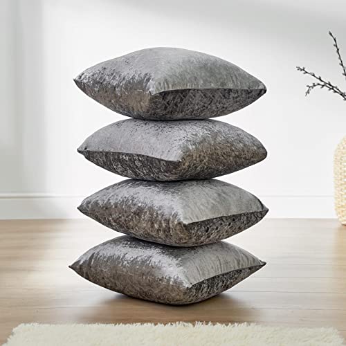 - Pack of 4 matching crushed velvet cushion covers, for a stylish modern feel in the bedroom as scatter cushions or to add a decorative feel to your living room sofa setup.