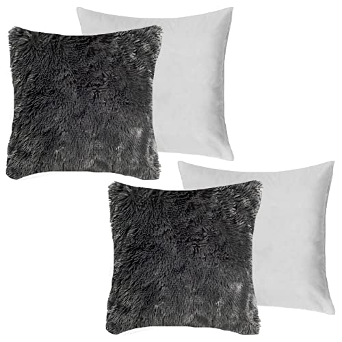 - Colour: Charcoal Grey: Cushion pad with fluffy shaggy design adds a modern feel to any home décor. Sleek charcoal grey fluffy cushion instantly brings a touch of class to bedroom or living room.