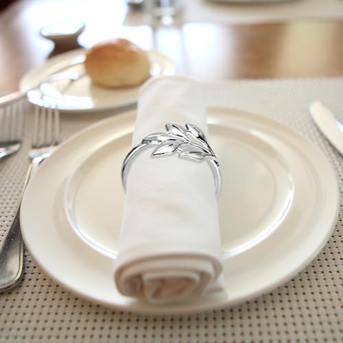 - [Eye-Catching Design]: The metal napkin rings are available in gold and silver to match any table theme, the leaf napkin ring mimics the look of a leaf and shimmers in the light, adding a touch of elegance to your table and more glamour to your event.