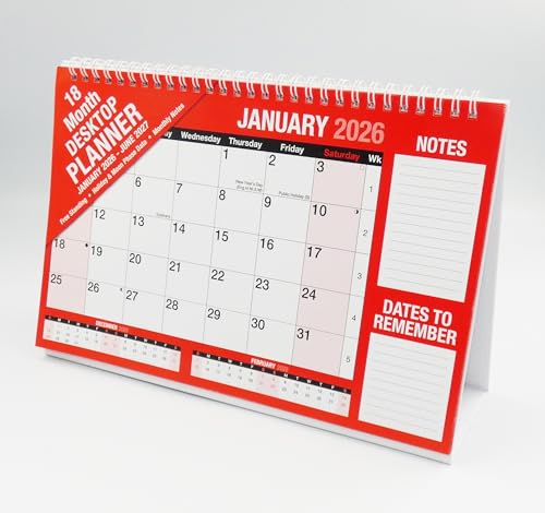 - Durable Spiral Binding – Red & white spiral bound design with a sturdy free-standing base, perfect for desktop or office use.