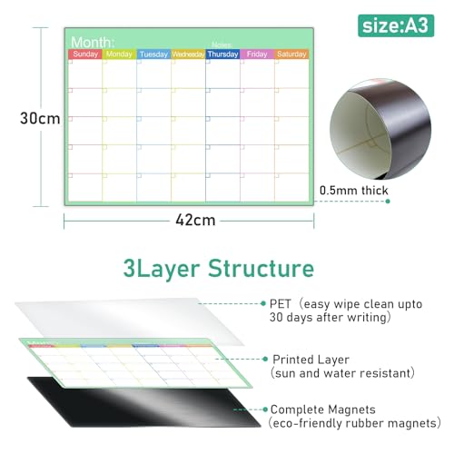 - 📅【MULTI-PURPOSE】This fridge calendar can be used by the whole family planner, work plan, study plan, reminding you of what you need to do and making life easier.